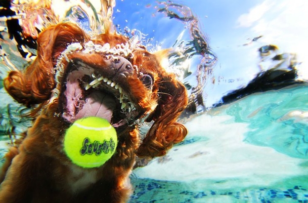 W sieci furorę robi właśnie najnowsza seria jego zdjęć. To dynamiczne ujęcia psów próbujących złapać piłki pod wodą. Doskonały jest zarówno pomysł jak i wykonanie.